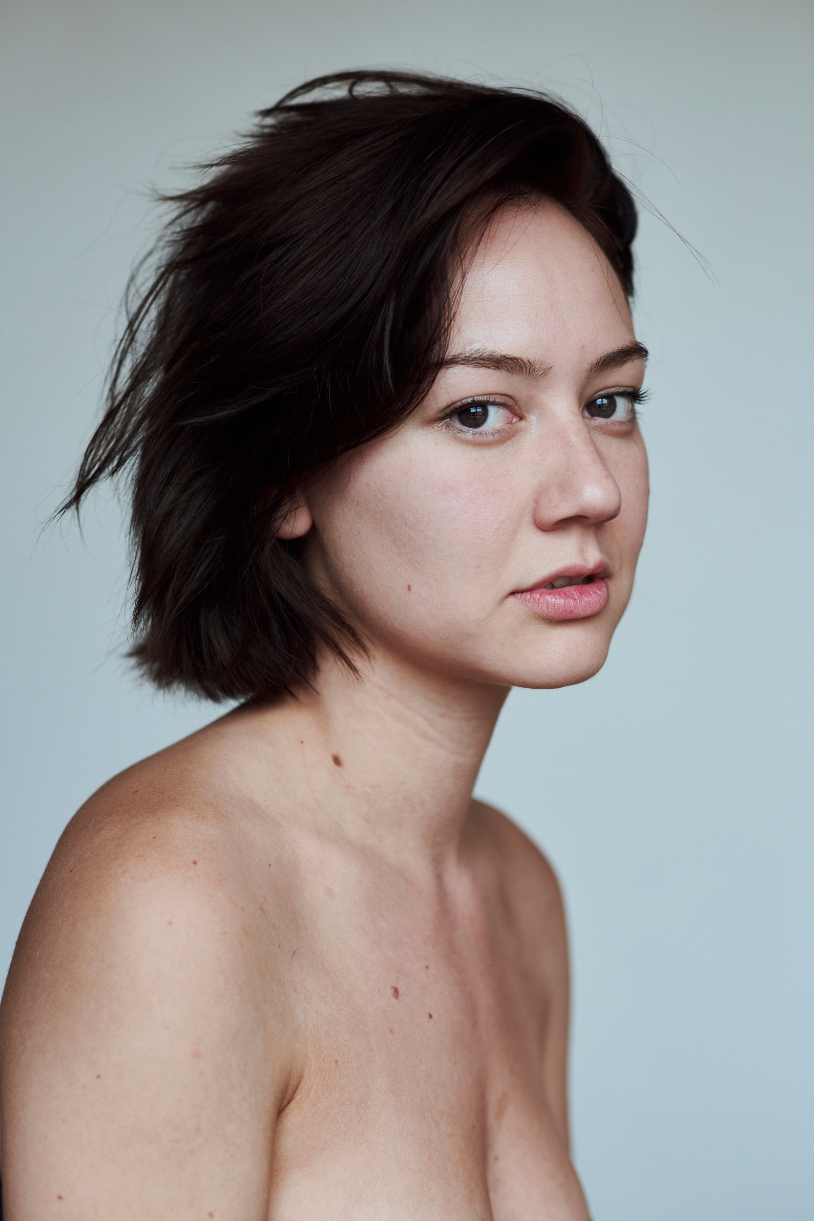 I decided that at the beginning of the shooting I follow natural beauty and during the photo session we changed it by putting on acting masks.