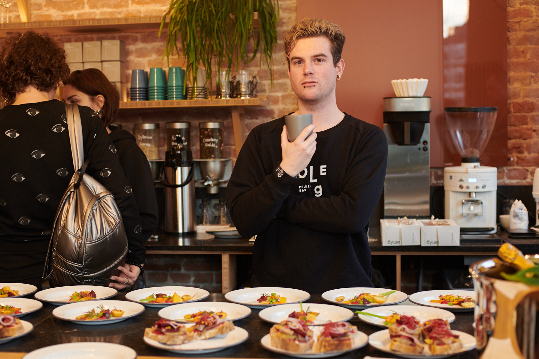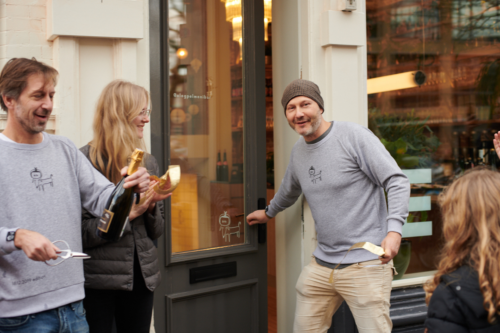 Photo documentation of opening Oleg Pelmeni Bar in Amsterdam.
